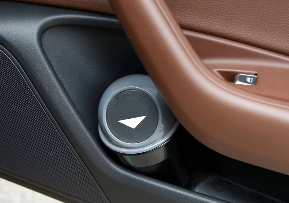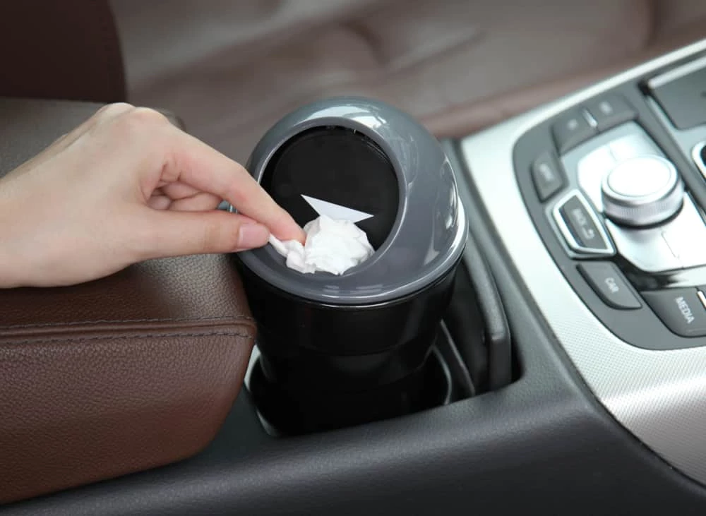 - AutoTrends Compact Cup Trash Bin helps keep your car clean