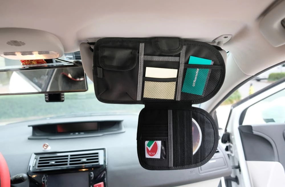 - Ultra Visor Organizer features multi-function storage pouches that are great for small stuffs, such as smart phones, name cards, etc.